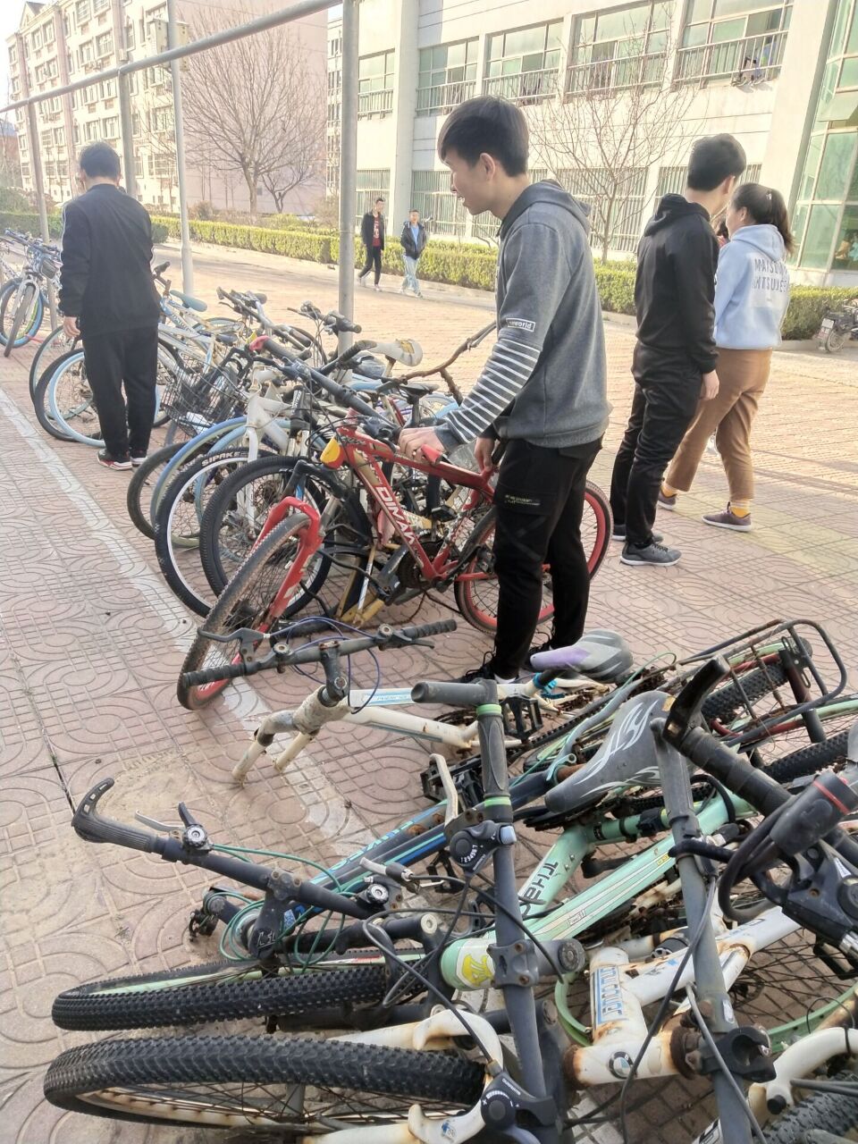 在我们的校园内,还有一些长时间不用的翻倒在地,难免会破坏校园内秩序。由于校园内共享单车摆放零散,所以每一区域都被详细划分,并为其安排了适当的人数,活动过程中,每一区域内自行车倒地甚多,并且有大量已被废弃的自行车阻碍了校园的正常交通。然而,在这种情况下,协会同学们仍旧没有丝毫的懈怠,将倒地的自行车摆放地整齐有序。