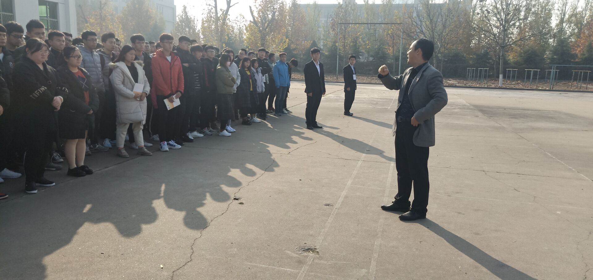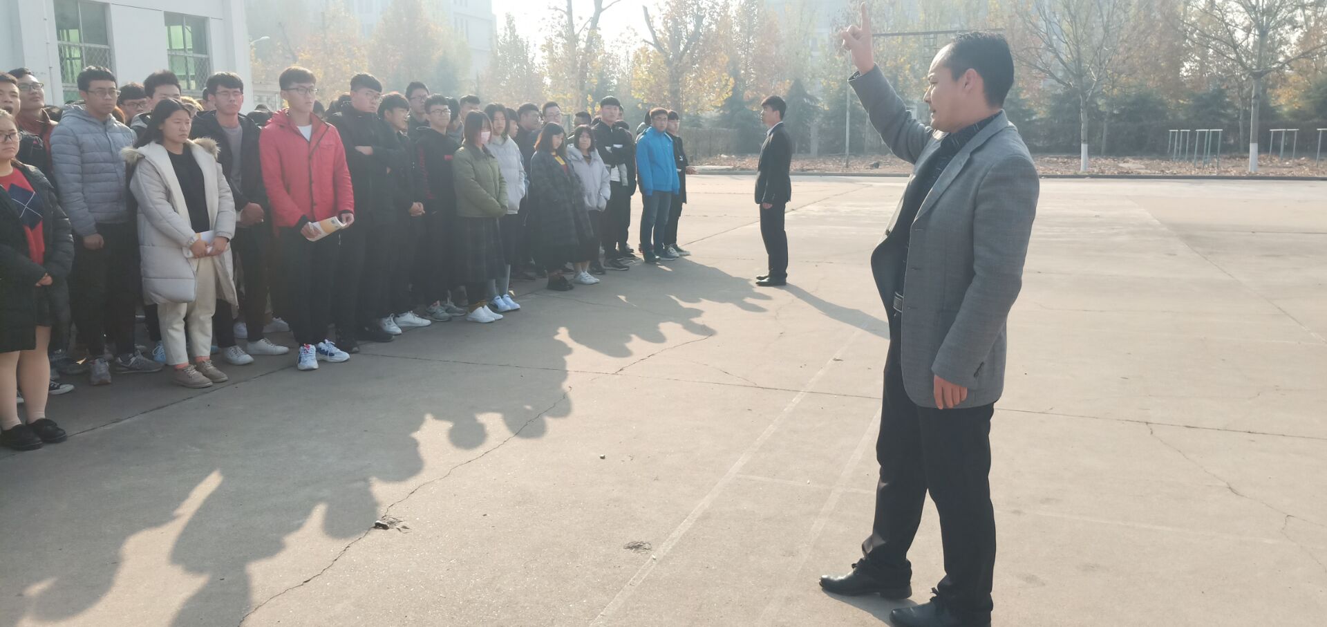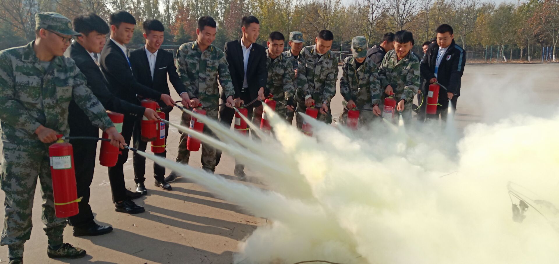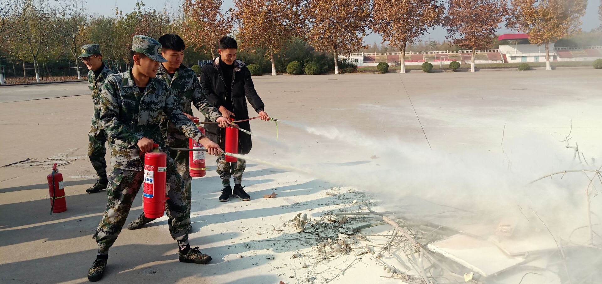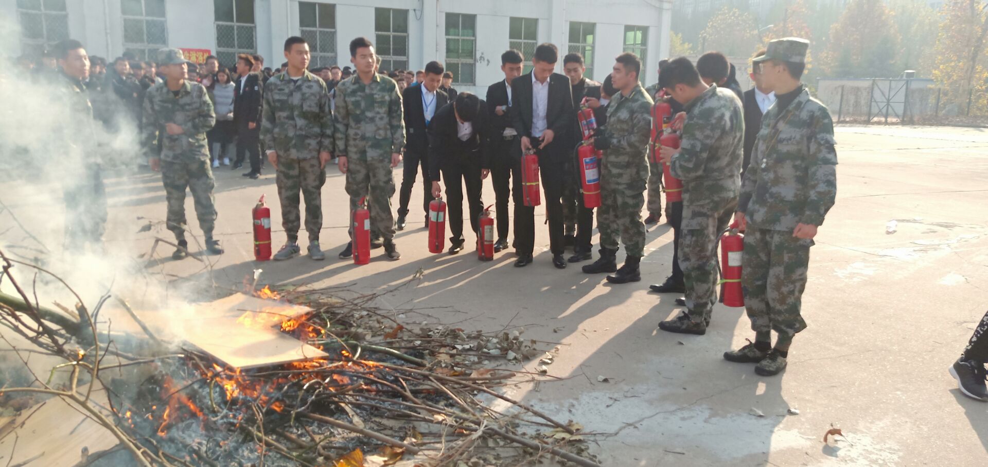 为了加强学生的消防安全意识,机电工程学院于2018年11月23日在万象城操场举行了消防演练。