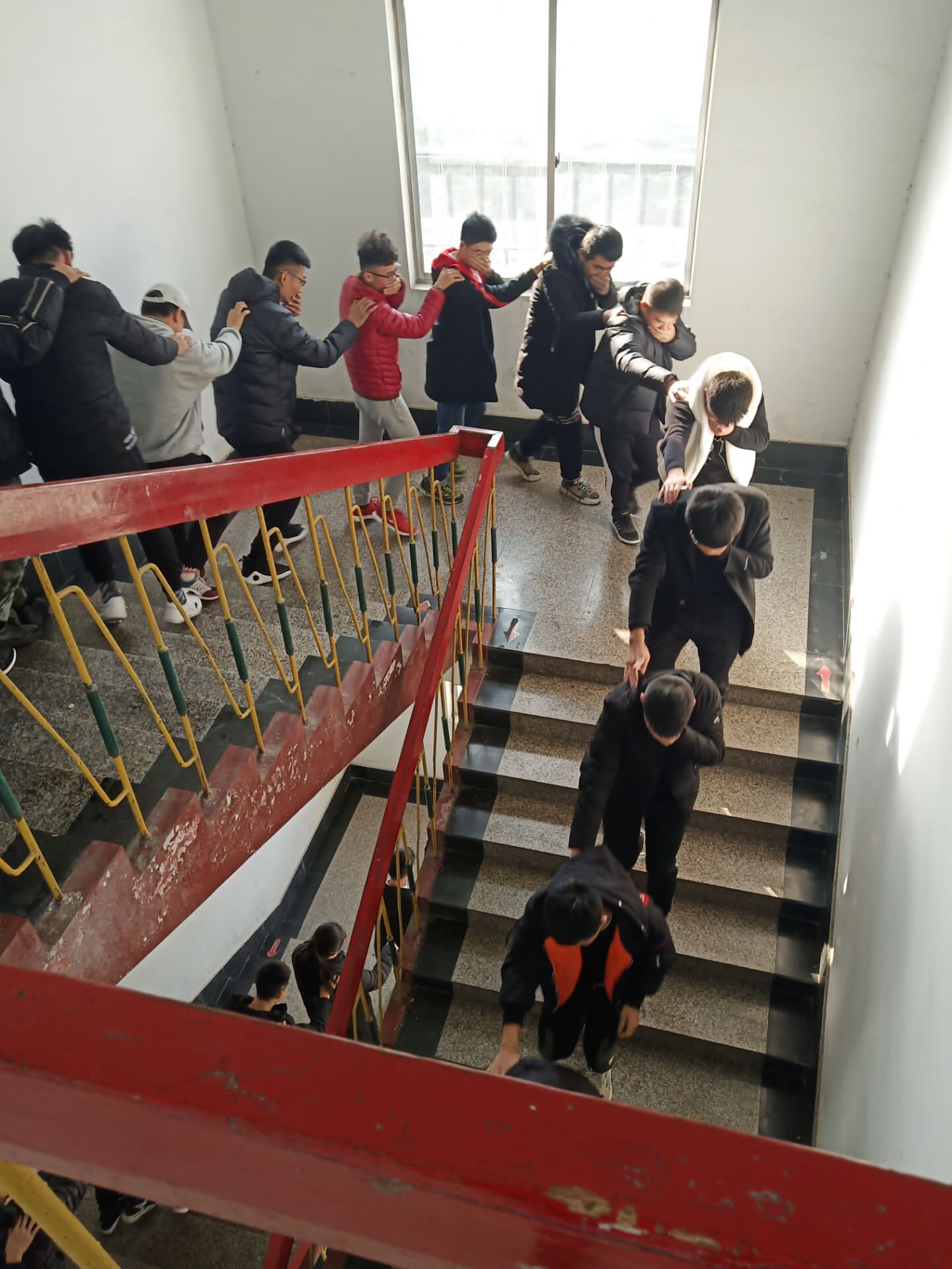 为了实施好次演练,机电工程学院的相关负责人员制订了详细的消防演练方案,对可能出现的问题做了事先防备。警报响起时,同学们迅速做出反应,各楼层的指挥人员迅速到达指定位置,所有的同学后一个搭在前一个同学的肩膀上,井然有序的撤离到指定位置。到达操场后,负责人拿出灭火器,教给同学们正确使用灭火器的方法,紧接着,每个班级派出一个代表,正确的操作了灭火器。