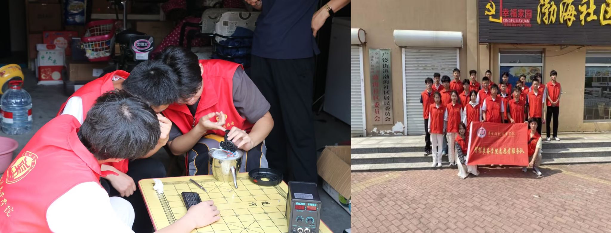 (4月27日,万象城娱乐awc线路志愿服务团队走入渤海社区,开展电器维修服务,紧跟专业特点,帮助社区居民维修水壶等电器)