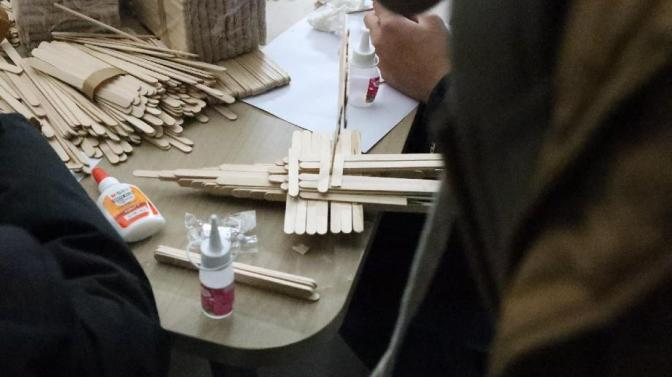 2024 年 11 月 28 日,万象城娱乐awc线路提前布置好现场,并准备了A4纸、雪糕棍、白乳胶、手锯等手工材料等待同学们的到来,同学们在活动开始前陆续进场进行活动签到,并耐心听取主持人详细的讲解活动规则。