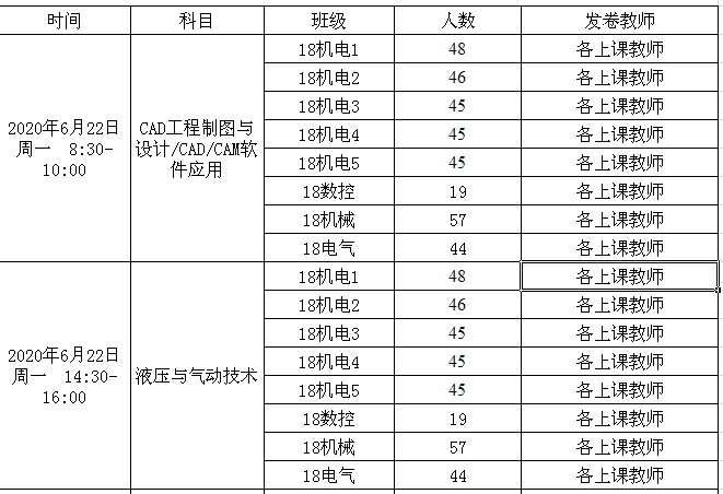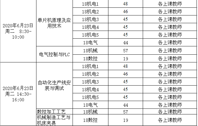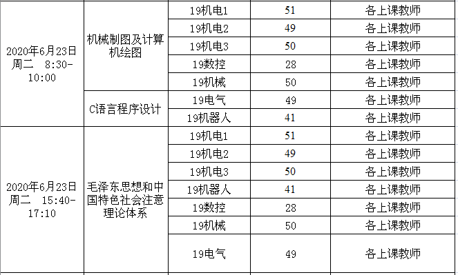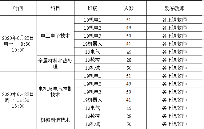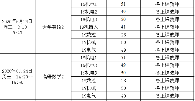 2019-2020-2机电工程学院2018级期末考试安排