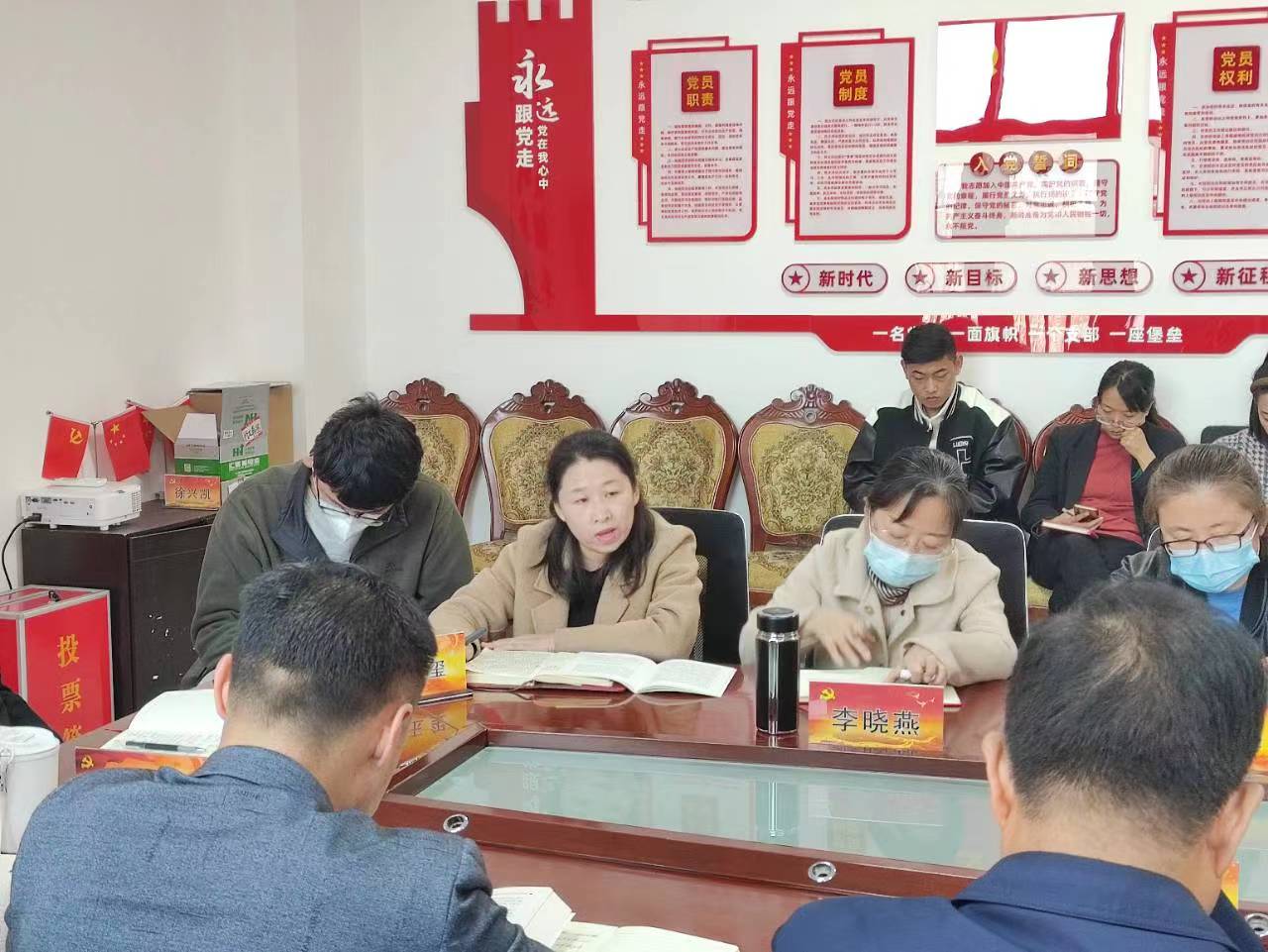全体党员在支部书记安丰金同志的带领下,按规定落实好6项规定动作:(1)重温入党誓词。(2)集中交纳党费。(3)学习理论知识。深入学习习近平总书记在中国共产党第二十次全国代表大会上的报告(4)通报重大事项。党支部向全体党员通报上月重点工作开展情况和本月工作打算。(5)开展党性教育。组织引导全体党员观看“灯塔大课堂”第三十九课学习贯彻《优秀党员教育电视片展播——打造乡村振兴齐鲁样板》。(6)朱建平、田文霞两位教研室主任结合党的二十大精神,谈了一下本教研室专业的发展。