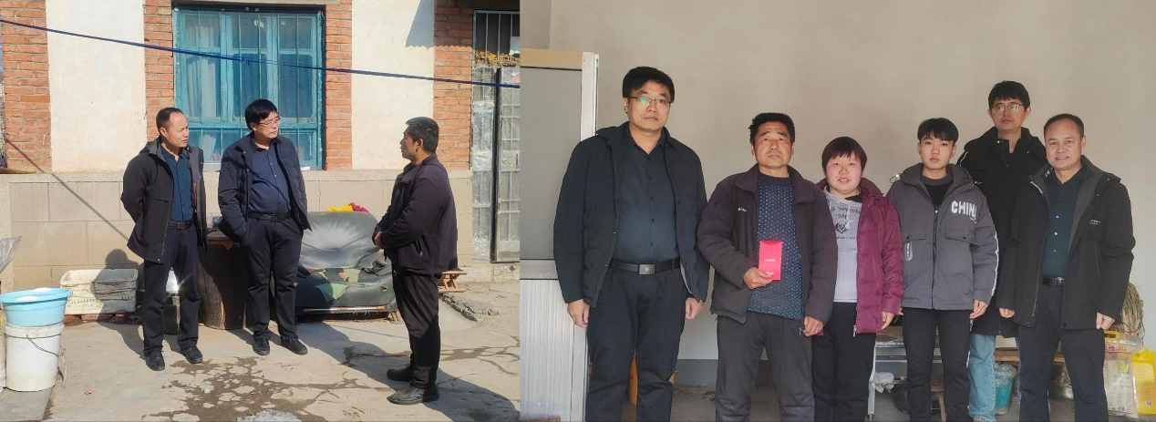 2024年1月28日,学院书记陈宏波、院长陈为全、副院长黄晓峰带领党支部方玉玺老师及辅导员王琦强、缪梦雨、吴少丽兵分两路,分别对三位困难学生家庭进行走访慰问,实地了解困难学生家庭生活状况,并送上米、油等慰问品和慰问金。